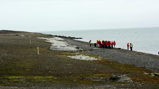 เช้าวันนี้อากาศขมุกขมัวไปด้วยเมฆ ลมแรง ฝนเริ่มปรอยๆลงมา อุณหภูมิหนึ่งองศา ซึ่งก็ไม่เย็นมากนัก แต่เพื่อนเดินทางหลายคนบ่นว่าหนาว เพราะฝนและลมที่พัดมา เราขึ้นเรือ zodiac ไปขึ้นฝั่ง Bamsebu อันเป็นชื่อที่สลักไว้หน้าเคบินเก่าๆหลังหนึ่ง ซึ่งเคยเป็นกระท่อมของนักล่าหมาจิ้งจอกแห่งอาร์คติค Arctic Fox และของนักล่าปลาวาฬที่ปฏิการตามชายหาด โครงของกระท่อมสร้างด้วยไม้ดุ้นใหญ่ ได้มาจากท่อนไม้ที่ลอยมาตามแม่น้ำที่ไหลมาจากไซบีเรีย ก่อนที่กระแสน้ำจะพัดมันให้ลอยมาจนถึง Svalbard ไม้ที่ลอยมานี้เรียกว่า drift wood เขตนี้เป็นเขตที่ต้นไม้ไม่สามารถขึ้นได้เลย จึงไม่มีทางที่จะตัดต้นไม้เอามาใช้สำหรับปลูกสร้างแน่นอน กระท่อมใช้แผ่นเหล็กเป็นประตู ส่วนหน้าต่างก็ตอกตาปูตัวเบ้อเริ่มเอาไว้จนทั่ว เพื่อป้องกันไม่ให้หมีหรือสัตว์ร้ายพังประตูเข้าไปได้
